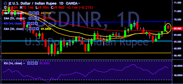 We prefer to take short position on USD/INR around 70.00, stop loss 70.15 and target of 69.46.