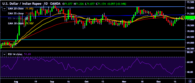 - It made intraday high at 71.22 and low at 71.07 marks.