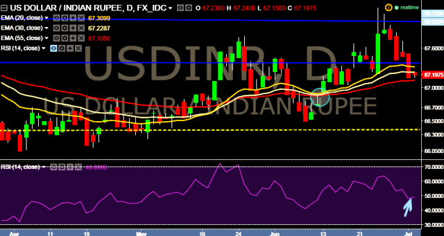 - It made intraday high at 67.24 and low at 67.15 marks.