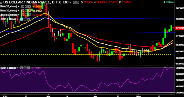 - It made intraday high at 67.78 and low at 67.55 marks.