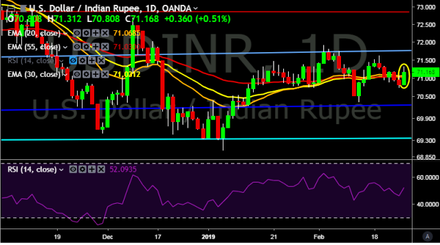 We prefer to take long position on USD/INR around 71.10, stop loss at 70.70 and target of 71.32/71.71.