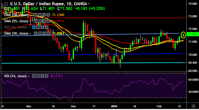 We prefer to take long position on USD/INR around 71.55, stop loss at 71.30 and target of 71.71/72.02.