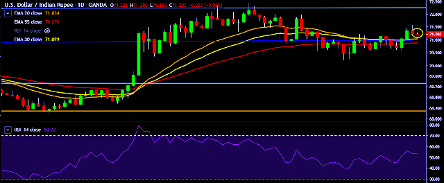 - It made intraday high at 71.28 and low at 71.18 marks.