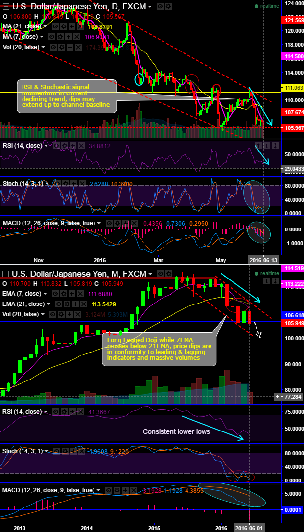 As a result, you can make out from the intraday charts, the prices have been in the range (106.844 and 105.739) but Fed’s potential deferral is leading every weakness in this pair that would drag more below lower range.