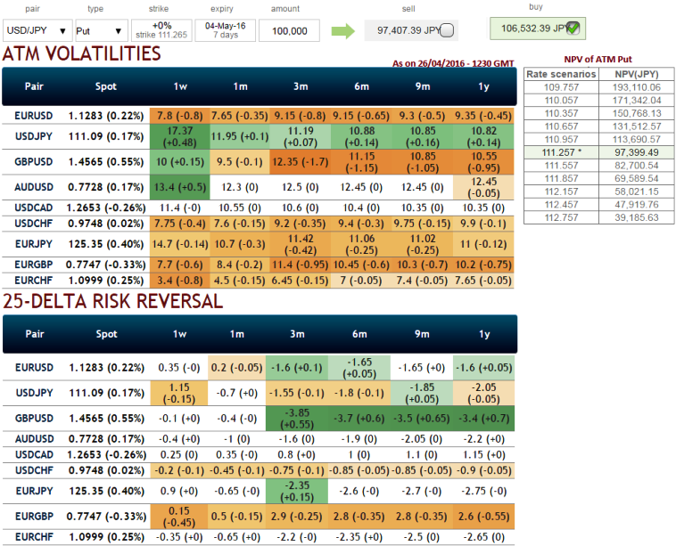 While, the premiums of ATM puts are trading just above 9% (9.37% to be precise), thus we these instruments are underpriced when you compare this with IVs and spot FX curves.