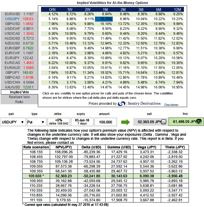 The premiums of ATM puts of USDJPY are trading above 17.4% at JPY for lot size 100,000 units. Thereby, we could see the disparity between IVs and option pricing.