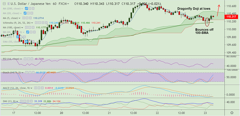 USD/JPY retraces from session lows at 110.12, trades at 110.33 at 04:00 GMT.