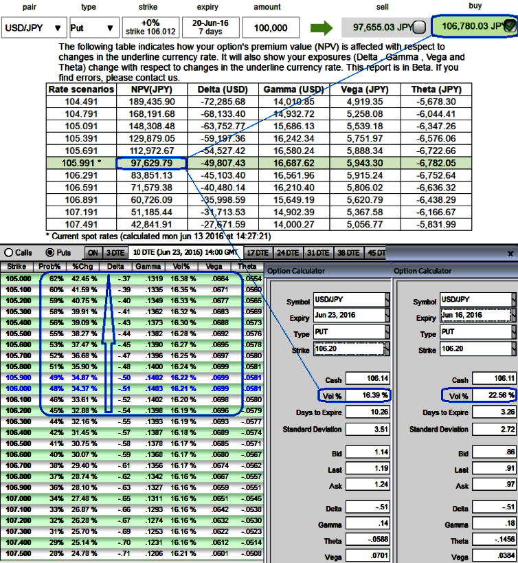 If you observe the sensitivity table, we tend to choose the OTM strikes of 10 Days to expiry so as to spot out the more productive and to give a leveraging touch to FX portfolios as these put instruments of OTM strikes evidence the healthy gamma and higher vols with higher probability numbers. This would mean that the more likelihood of expiring in the money on expiry.