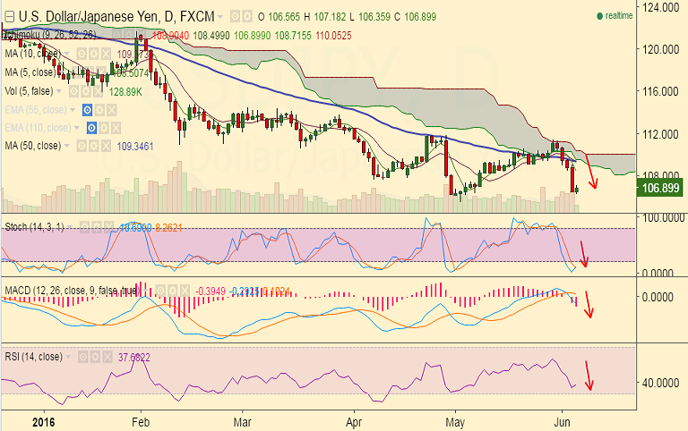- USD/JPY plummeted nearly 250 pips last Friday, extended decline to hit 4-week low of 106.35 on Monday.