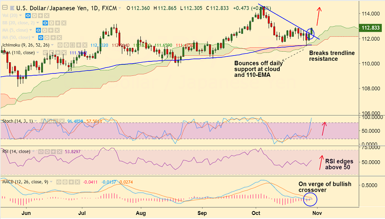 - Stochs and RSI have turned higher and the major has broken strong trendline resistance at 112.35.