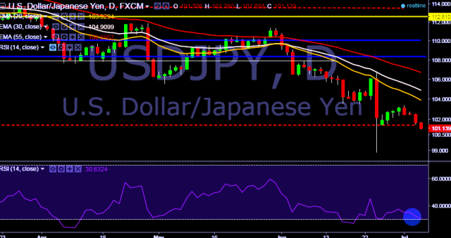 - USD/JPY is currently trading around 101.19 marks.