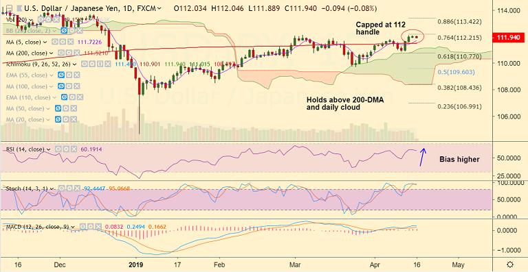 Support levels - 111.72 (5-DMA), 111.52 (200-DMA), 111.36 (21-EMA)