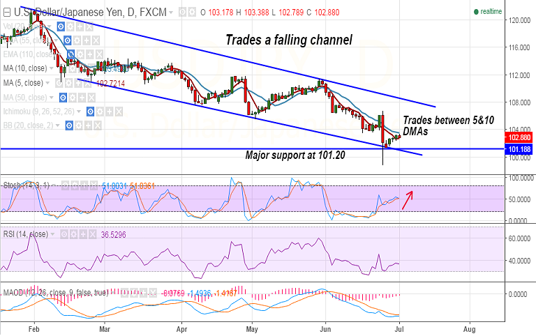 - USD/JPY has edged above 5-DMA at 102.72, but remains capped below 10-DMA at 103.50.