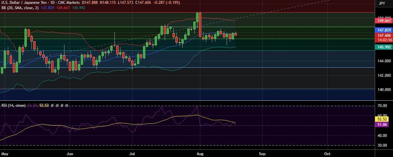 • USD/JPY eased slightly on Tuesday as markets digested the outcome of a White House summit with European leaders, seen as pivotal for the next phase of the Ukraine conflict.