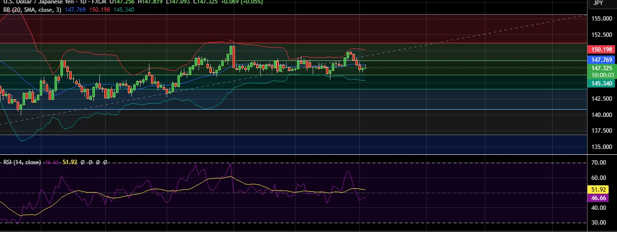 Recommendation: Good to sell around 147.40, with stop loss of 148.30 and target price of 146.60
