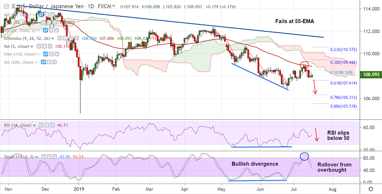 Resistance levels - 108.16 (5-DMA), 108.21 (21-EMA), 108.85 (55-EMA)
