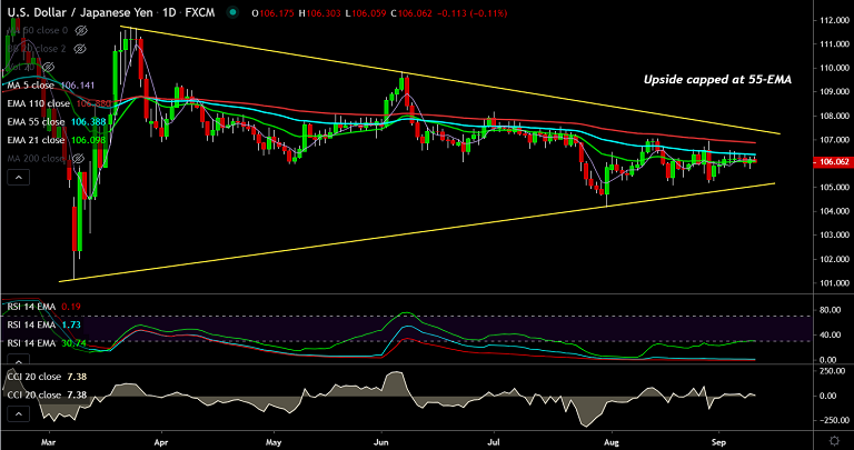 Major trend on the weekly charts is bearish and bias tilted lower as long as pair remains capped below 55-EMA.