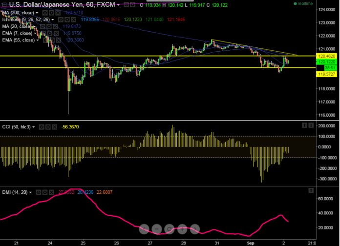 - USD/JPY has recovered after making a low of 119.21 and is currently trading at 119.96. The pair's major intraday resistance is around 120.60 (Support turned into resistance and also 200 day HMA).