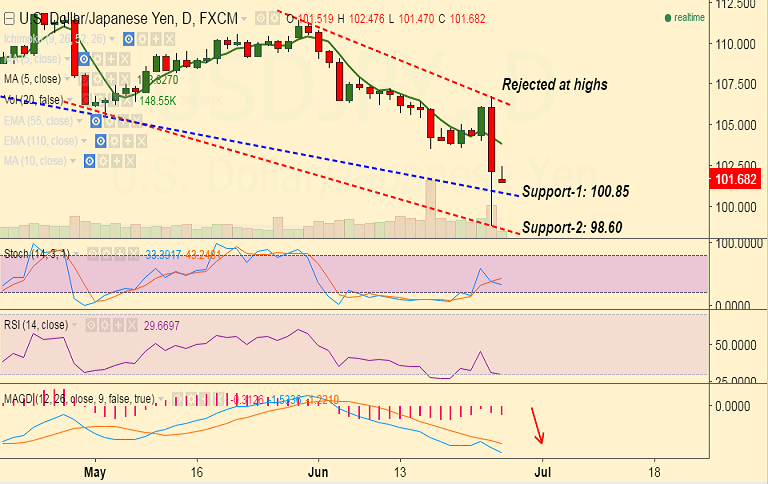 - Post-Brexit risk aversion continues in Asia, treasury yields drop, Yen demand made a comeback.