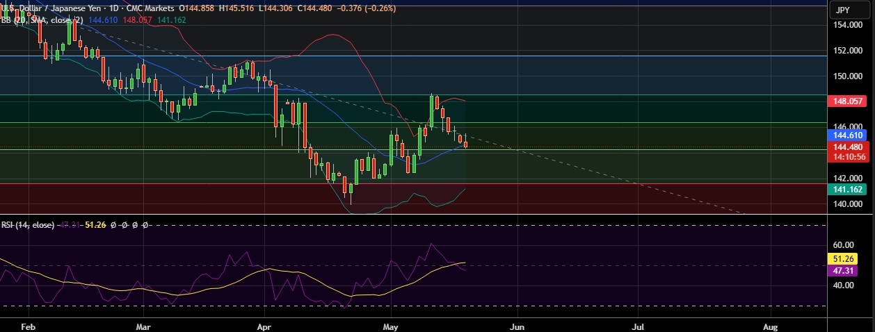 • Recommendation: Good to sell around 144.50 with stop loss of 145.60 and target price of 143.60