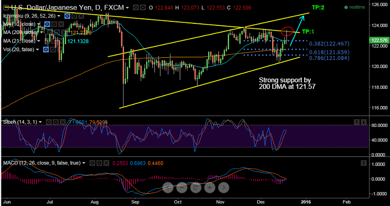 Our initial target at 123.35 has been hit, we recommend booking partial profits and continue to hold for TP2.