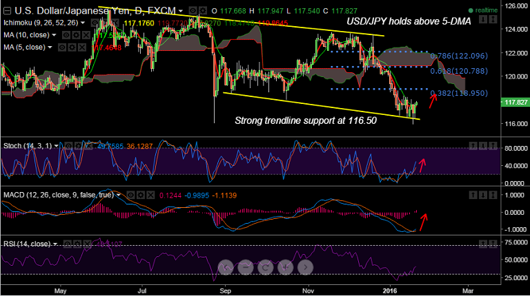 FxWirePro: USD/JPY holds above 5-DMA at 117.45, good to go long on dips