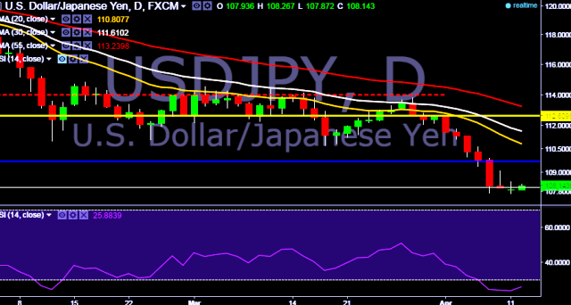 - USD/JPY is currently trading around 108.11 marks.
