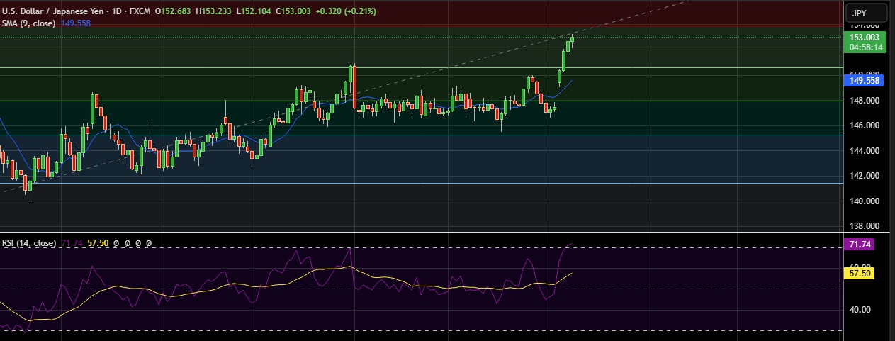 • Immediate resistance is located at 153.30(Daily high), any close above will push the pair towards 153.91 (23.6%fib).