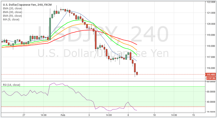 The USD/JPY pair sunk sharply towards lower levels on Monday, hitting as low as 115.15, level last seen 15 months ago as renewed slide in oil prices and doubts about effectiveness of Bank of Japans interest rate policy attracted investors back in safe heaven Japanese yen.