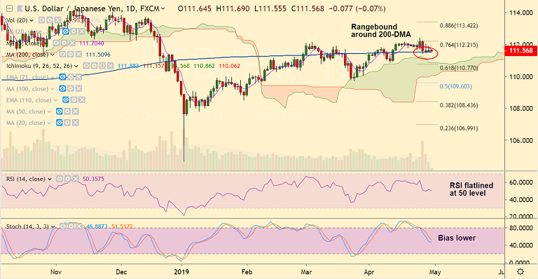 - Below 200-DMA the pair finds serious of strong support till daily cloud at 110.86. Break below cloud top to see further weakness.