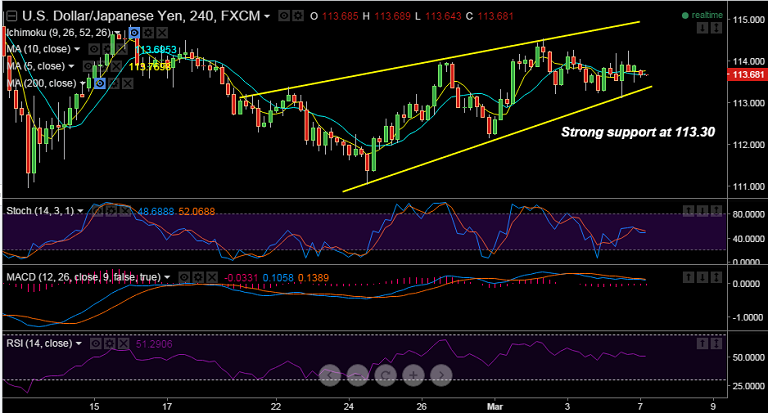 - Breaks below 113.30 will take the pair to next support at 113.24 (10-DMA) and then 113.12 (March 4th lows).
