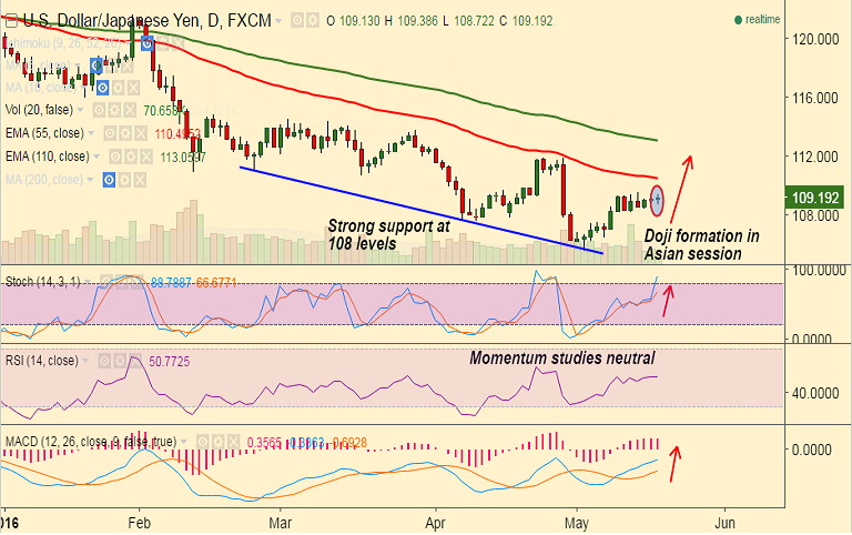 - Technically, on the daily charts, we have see a Doji formation in the Asian session. The pair is seen supported above 10-DMA at 108.52.