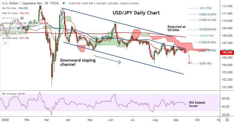 Price action has slipped below the 106 handle as recovery attempts in the pair have been rejected at 50-DMA.