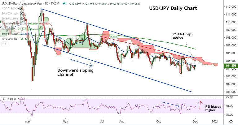 Downside bias remains intact. The major finds stiff resistance at 21-EMA, decisive break above will be required for further upside.