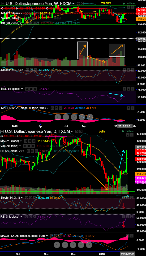 On weekly charts, we could foresee in short to medium run all signs of attempts to retesting supports at 120.398 and 118.583 regions again, on a long-term perspective, the non-directional to slightly bearish bias trend to persist that has lasted for almost 1 year that remained in the range of 115.750 - 125.856.
