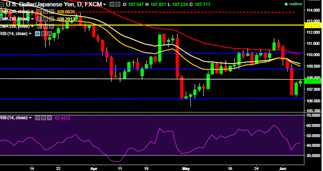 - Intraday bias remains neutral till the time pair holds key resistance at 107.82 marks.