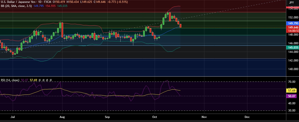 • Support is seen at 149.59 (50%fib) and break below could take the pair towards 149.00 (Psychological level)