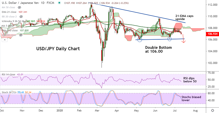 The risk-off tone attributed to concerns that rising coronavirus cases would dent the still-nascent economic recovery keeps downside pressure.