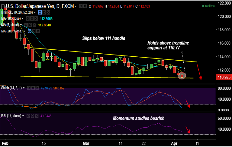 - On the upside, resistance is seen at 111.77 (5-DMA) ahead of 111.80 (Apr 4th highs).