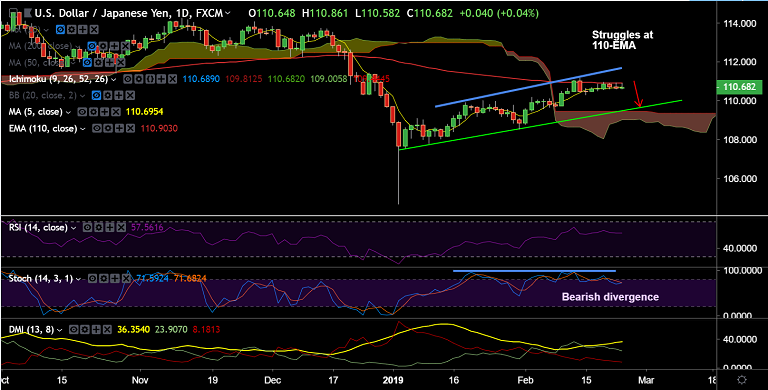 Resistance levels - 110.90 (110-EMA), 111, 111.30 (200-DMA)