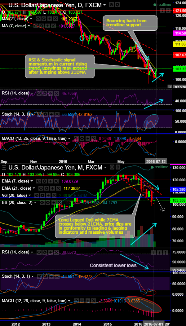 The upswings seem most likely as the pair takes trendline support at 100.521 levels.