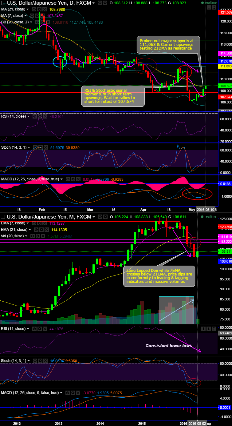 While, on an intraday trading perspective, aggressive bulls can better use one touch binary calls for targets of 109.910 levels upon breach of 21DMAs, otherwise we’re still bearish bias.