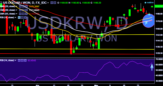 We prefer to take long position in USD/KRW only above 1194, stop loss 1177 and target 1209 marks.