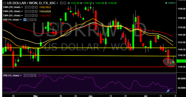We prefer to take short position in USD/KRW only below 1128, stop loss 1142 and target 1115/ 1095 marks.