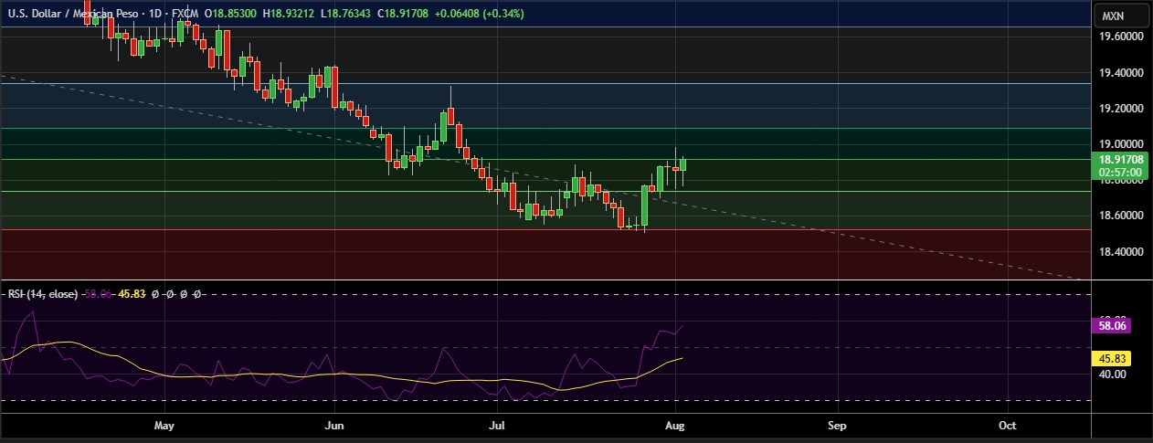 • USD/MXN edged higher on Monday as U.S. dollar staged a modest rebound recovering some ground after a sharp decline on Friday triggered by weaker-than-expected labor market data.