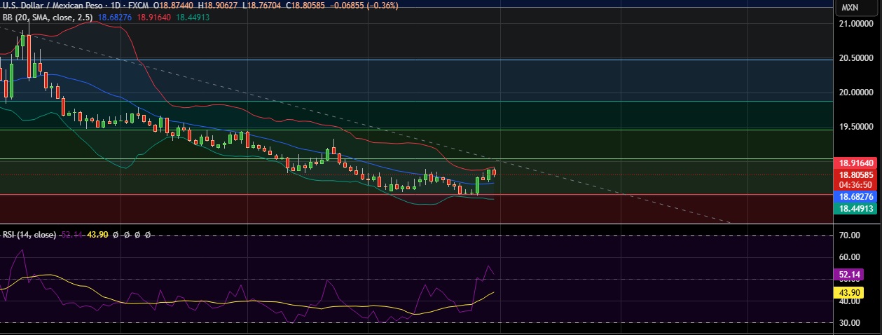. • At GMT 16:22 ,the dollar was down 0.30 % at 18.810 against Mexican peso.