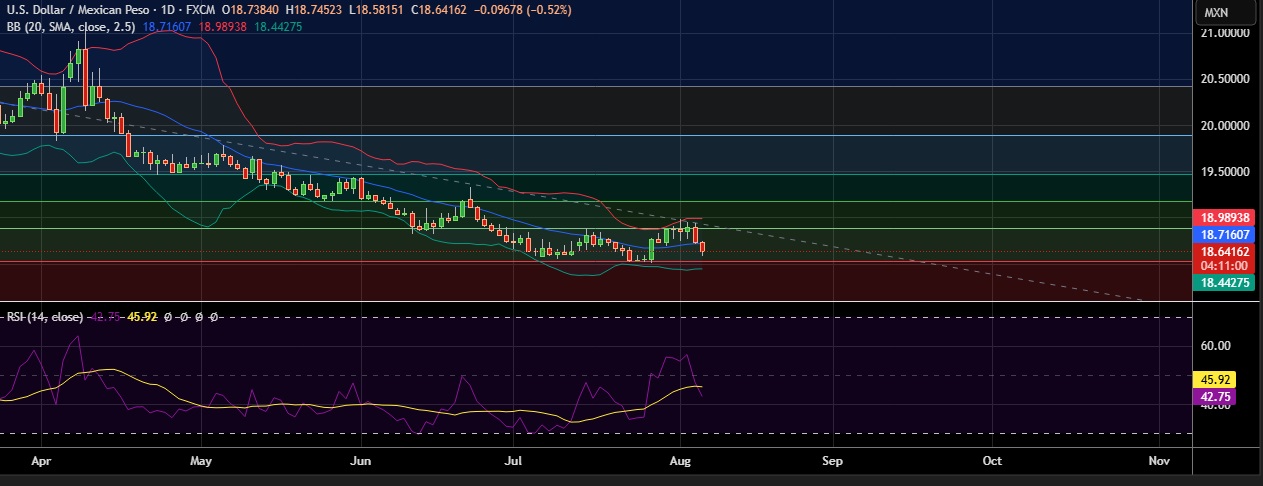 • At GMT 16:47,the dollar was down 0.47 % at 18.647 against Mexican peso.