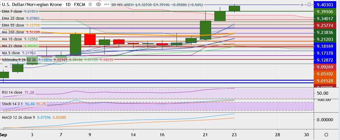 - On the downside, support is around 9.3023, break below could take it till 9.2615.