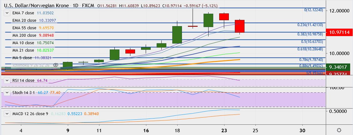 FxWirePro: USD/NOK breaks below 11.000, major support at 10-DMA