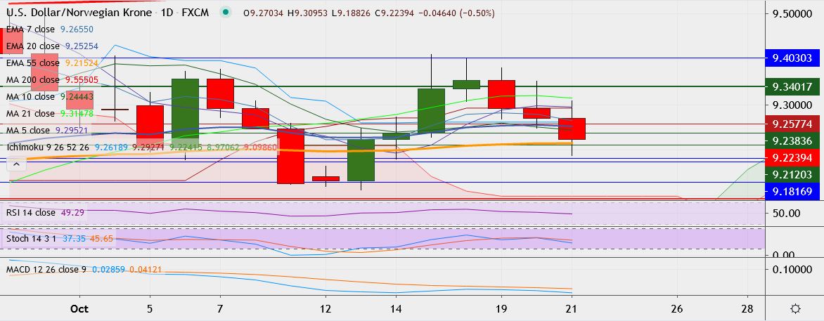 FxWirePro: USD/NOK breaks below 55-EMA, finds support at 9.1804